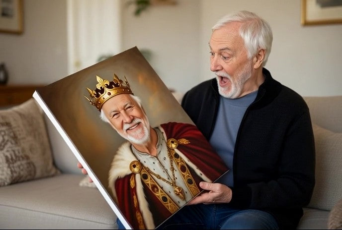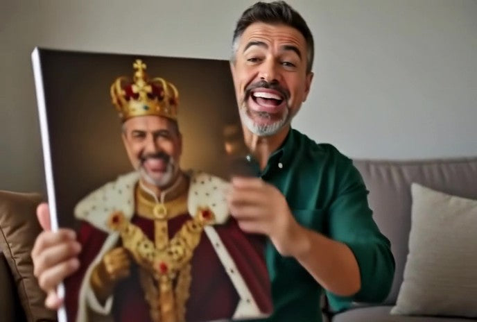 Upload your photo. Pick your vibe. We'll Canvas Me Crazy it into a portrait you'll love forever. From ordinary to outrageous — kings, queens, astronauts, gamers, cowboys & beyond.